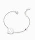 Bracciale della collezione leBebé Primegioie. Il gioiello è in oro bianco con elemento di forma rotonda con sagoma del bimbo in smalto bianco. Chiusura a moschettone.