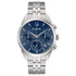 Il nuovo Cronografo Bulova monta una cassa in acciaio da 42 mm di diametro e un vetro zaffiro che protegge il quadrante blu con funzione di data.