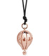 Ciondolo Suonamore Le Mongolfiere in argento placcato oro rosa, montato su cordino nero ecologico. Il regalo perfetto per le neo-mamme.