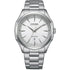 Orologio con cassa in acciaio di diametro 41 mm con fondo serrato a vite; quadrante chiaro con indici applicati; bracciale in acciaio integrato con chiusura di sicurezza a pulsante; resistenza all'acqua di 1O ATM; movimento Eco Drive; vetro minerale. Funzione datario: si.