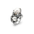 Questo anello è uno splendido omaggio alle forme coralline che, luminose e sapientemente realizzate dai nostri artigiani mediante l'antica tecnica della fusione a cera persa, avvolgono in un delicato abbraccio due perle scaramazze dai riflessi bianco opalescenti.