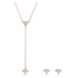 Esprimi la tua personalità con il set ORTYX Swarovski! Il design punk con pietre dal taglio triangolare incastonate a mano e pavé sfavillante è completato dalla placcatura oro rosa, per un mix unico di originalità e raffinatezza. Include collana a Y e orecchini, per un look che si aprirà a un mondo di possibilità!