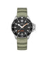 Orologio con movimento automatico cal. H-10, con 80 ore di riserva di carica. Cassa in acciaio da 46mm, quadrante nero e vetro zaffiro antigraffio e antiriflesso. Cinturino caucciù verde con ansa da 22mm, resistenza all'acqua 300metri/30Bar.
