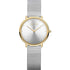 Orologio solo tempo con cassa realizzata in acciaio inossidabile di colore oro brillante con quadrante di colore argentato. Dimensioni cassa: altezza cassa 5 mm, larghezza cassa 29 mm. Il bracciale è in maglia mesh di colore argentato. Larghezza bracciale: 14 mm. Il vetro è zaffiro con chiusura a scatto. Il movimento è al quarzo. La resistenza all'acqua è 3 atm.