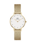 Orologio solo tempo della collezione Daniel Wellington Petite Lumine Evergold da donna. Colore cassa: pvd oro; colore del quadrante: bianco; colore del bracciale: pvd oro. La cassa di diametro 28 mm è in acciaio inossidabile 316L con trattamento pvd oro. Il quadrante è impreziosito da luminosi cristalli e da un vetro minerale.