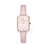 Orologio solo tempo della collezione Quadro Mop del brand Daniel Wellington. L'orologio ha cassa rettangolare 20x26mm in acciaio di colore oro, quadrante di colore rosa con logo lettering. Il cinturino è in pelle di colore rosa con chiusura ad ardiglione.