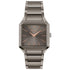 Orologio da donna The B: design geometrico e sinuoso con cassa sottile in acciaio titanium bilux e dettagli rose gold. Eleganza e originalità in un accessorio unico.