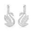 Questi scintillanti orecchini sono la raffigurazione perfetta dell’iconico Cigno Swarovski in movimento. Ogni orecchino è impreziosito da un pavé all-over di cristalli bianchi incastonati su una placcatura rodio che conferiscono alla sihouette particolare brillantezza. Indossali per ricordarti ogni giorno di spiegare le ali.