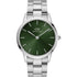 Cassa realizzata in acciaio inox dal diametro di 40 mm e spessore di 9,5 mm. Quadrante sunray smeraldo con indici a bastoni. Cinturino in acciaio anallergico. Chiusura deployante in acciaio con pulsanti. Resistente all'acqua fino a 30 metri di profondità.