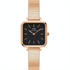 Quadro Studio presenta un quadrante quadrato di colore nero, piccolo e delicato, completato dall’elegante cinturino Piano. Realizzato in acciaio inossidabile lucido e disponibile in una raffinata placcatura in oro rosato. Uno stile retrò con un fascino senza tempo.