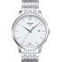 Orologio Tissot tradition con movimento al quarzo Swiss made, vetro in zaffiro bombato antigraffio, quadrante chiaro da 42mm, cassa in acciaio 316L, bracciale in acciaio 316L con chiusura a farfalla e pulsanti.